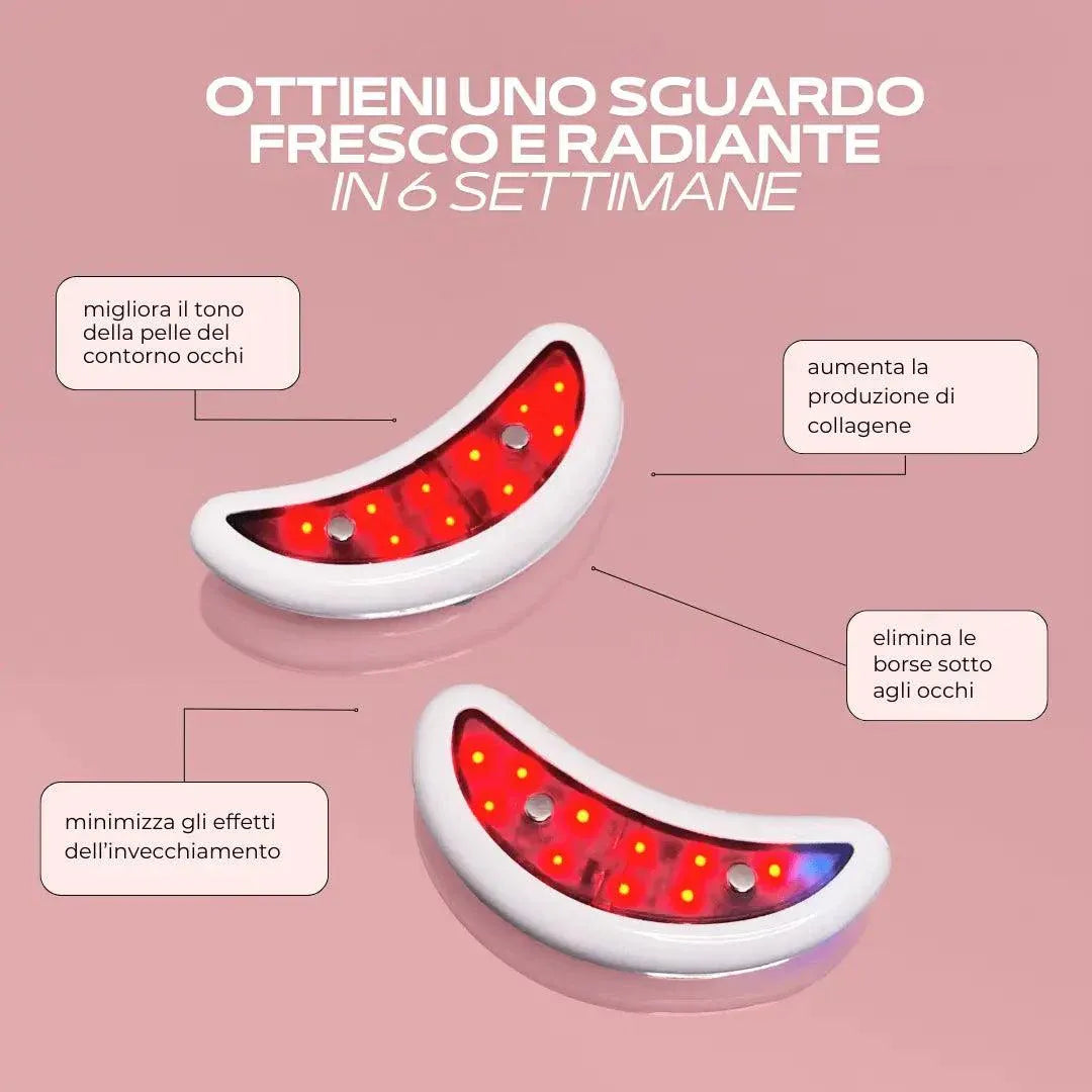 Dimentica lo sguardo stanco! Con questo innovativo dispositivo a LED rosso, riduci occhiaie, borse e rughette in pochi minuti al giorno. Comodo, veloce e super efficace: la tua nuova arma segreta per uno sguardo fresco e luminoso!